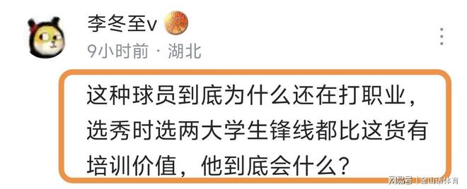 “这种球员到底为什么还在打职业,选秀时选两大学生锋线都比这货有培训价值,他到底会什么?”;“这种也是职业球员 中国篮球水平得多低”;“你赶紧滚,看你打球真气,打了这么多赛季,不长进倒回头走。”……