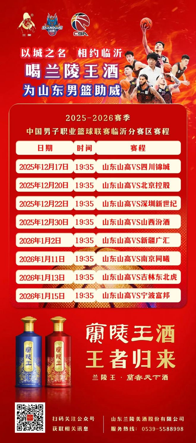 这个冬天,让我们继续以城市之名,为山东而战!让兰陵王酒的醇香继续飘荡在每一个热血沸腾的赛场,共同书写属于山东男篮的新传奇!