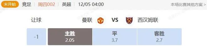 竞足 周四002 英超 曼联VS西汉姆联