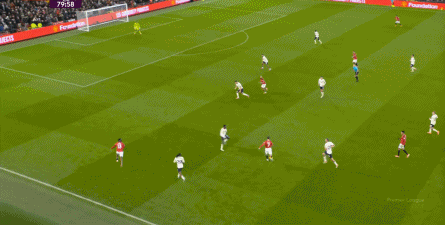 过程中,随着卢克-肖的前插,曼联投入的人手确实增加了,所以在进攻节奏没那么快,效率也没那么高的情况下,从强侧打不进去,但形成了转移,从而在弱侧完成起脚,便在禁区内让达洛特捡了一个漏。